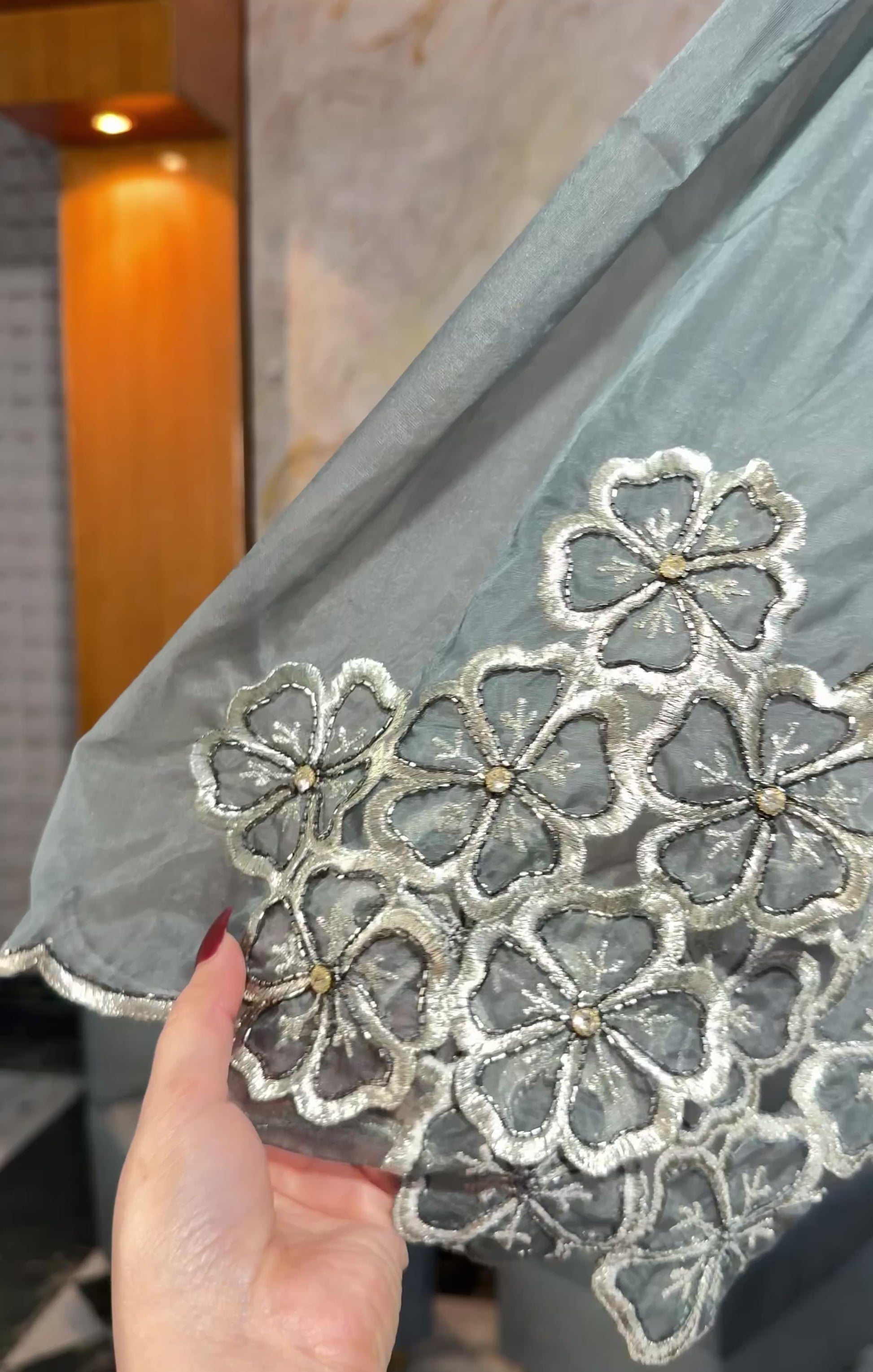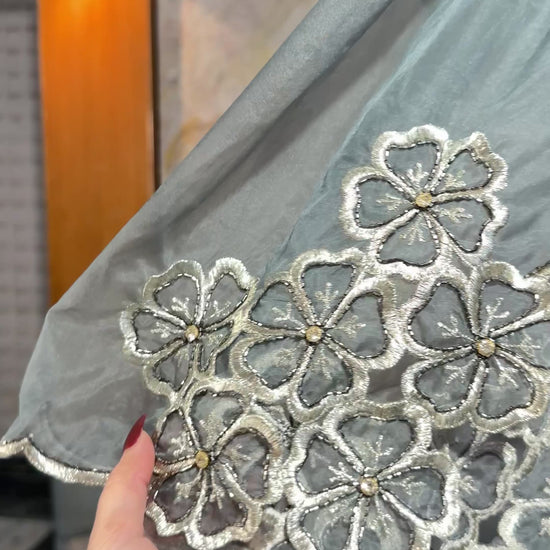 This stunning Pakistani suit set is crafted with meticulous handwork and intricate machine embroidery, every stitch is a work of art. The flowing farshi salwar creates an effortlessly elegant silhouette, while the gorgeous dupatta adds that perfect finishing flourish.