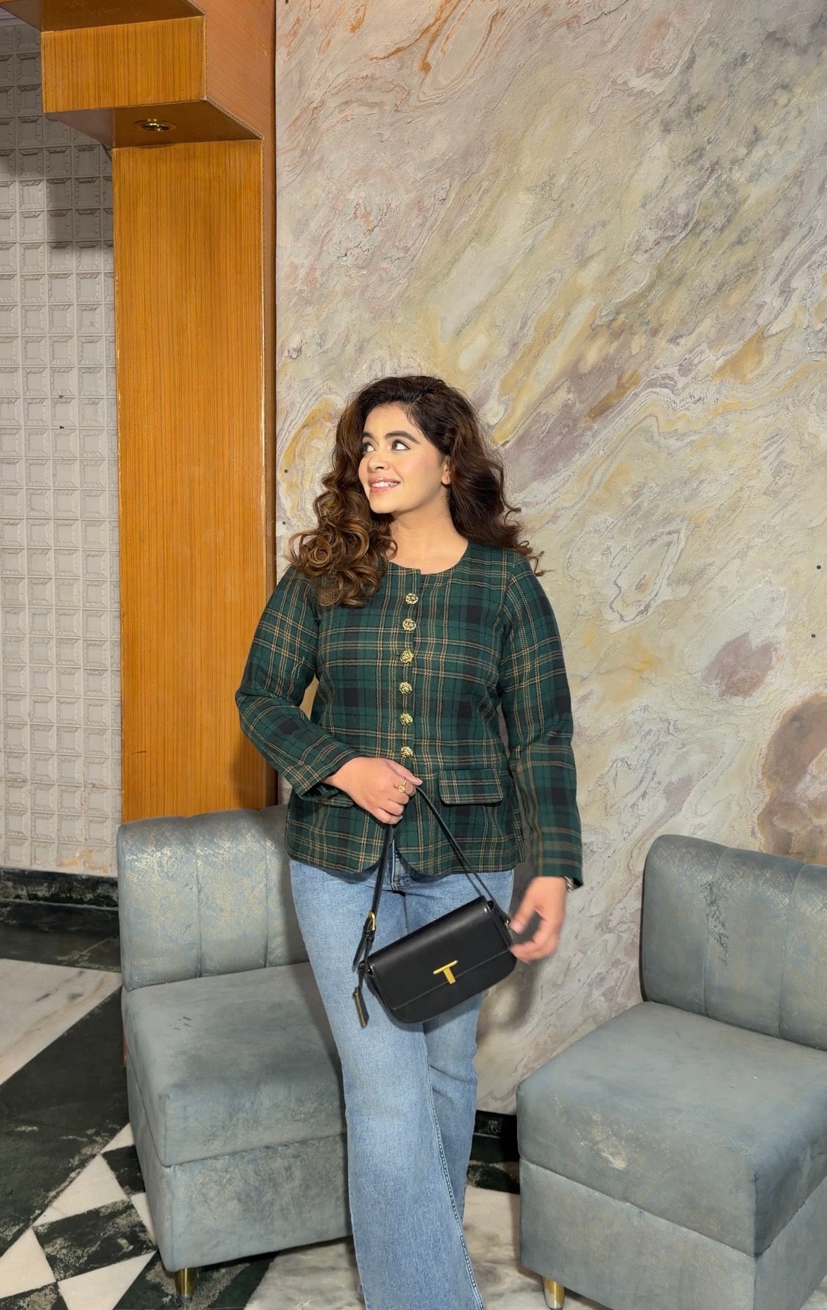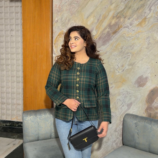 Green-black plaid jacket